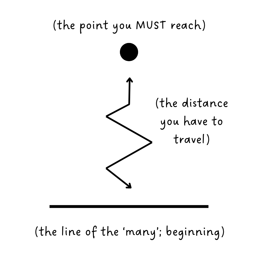 "Now, to do so, you'll have to go through triangles; always triangles; never circles. There have to be angles, many, many angles. You'll have to chase corners, tips, peaks; to jump from one branch to another, always looking up up UP! You have to see ruin when looking back, otherwise it's not enough. The distance you'll be able to climb depends on the strength of the flame left behind: the more it burns, the further you'll rise. And, after a sea of crumbling, sizzling branches is left behind you, and your eyes burn from the smoke you had to go through, you've made it. You're at the top. You're on top!"
